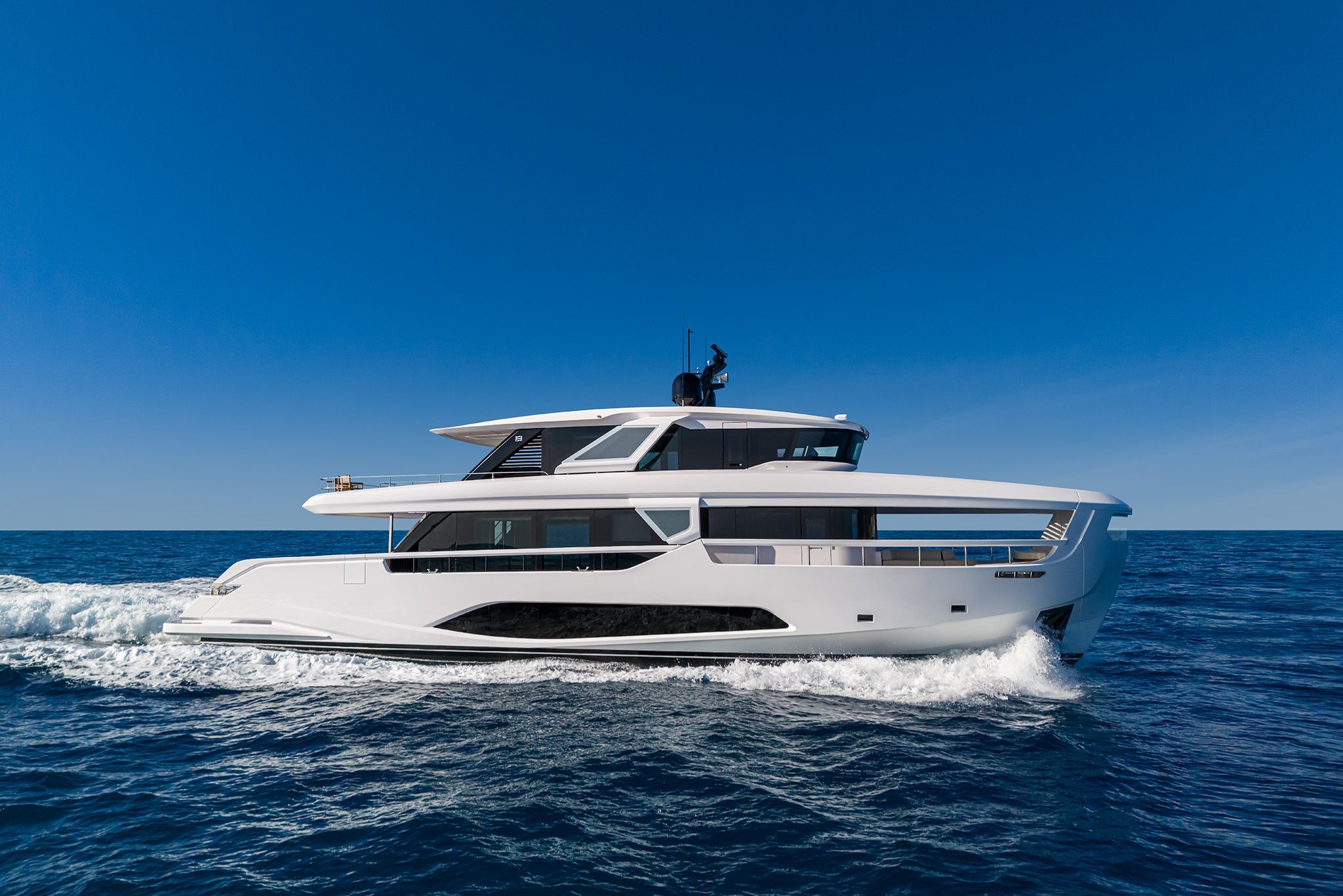 Ferretti Yachts INFYNITO 90 er første model i en helt ny serie, der baner vejen for fremtidens luksusyachter. Inspireret af explorer-vessels er denne model skabt til at sejle lange distancer både dag og nat – med en rækkevidde på op til 1.200 sømil ved 12 knob eller en topfart på 22 knob takket være det effektive fast displacement-skrog.