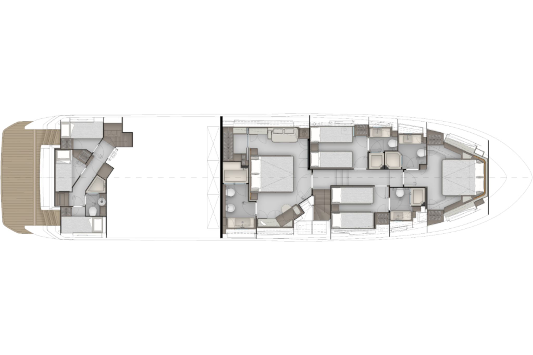 Ferretti Yachts 800 er indbegrebet af italiensk yacht-design, hvor luksus, komfort og gennemtænkte løsninger går hånd i hånd. Modellen er udviklet med fokus på at give ejeren en overlegen livsstil ombord, og den intelligente planløsning sikrer, at alle kvadratmeter udnyttes optimalt.