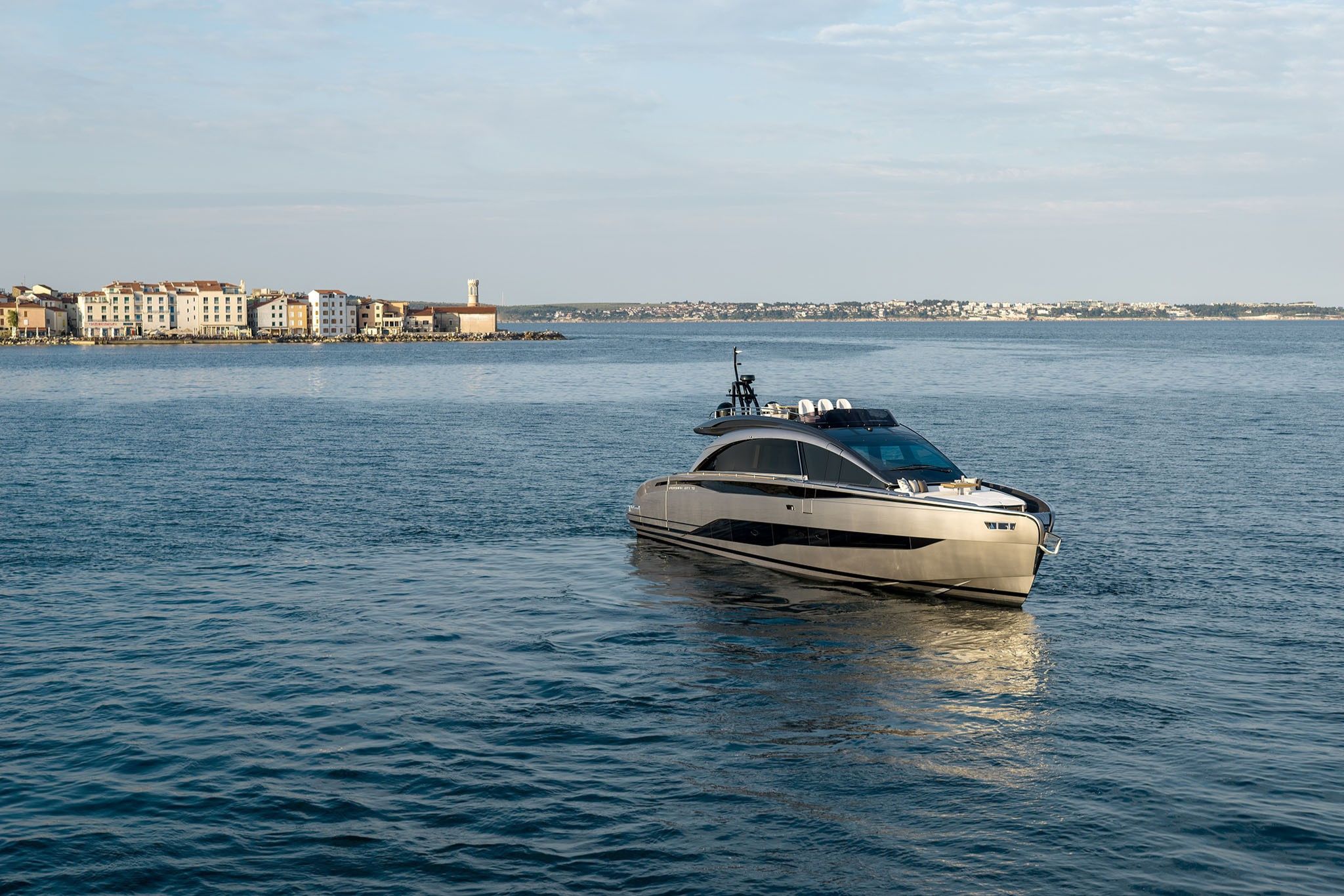 Med tre kraftfulde IPS-motorer og et avanceret kontrolsystem leverer GTX70 præcis håndtering. En perfekt balance mellem Pershings sportslige DNA, sofistikeret komfort og tidløs elegance.