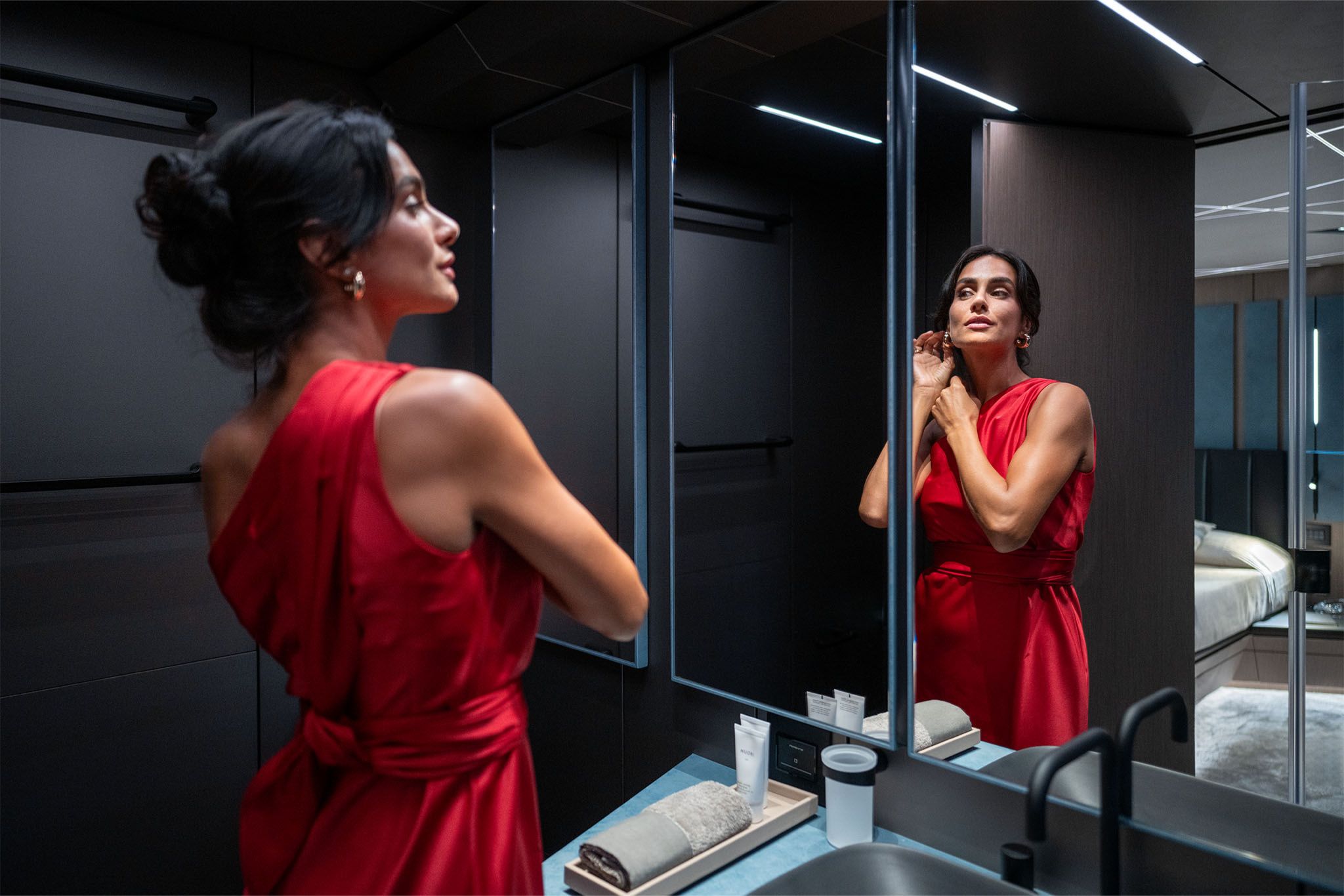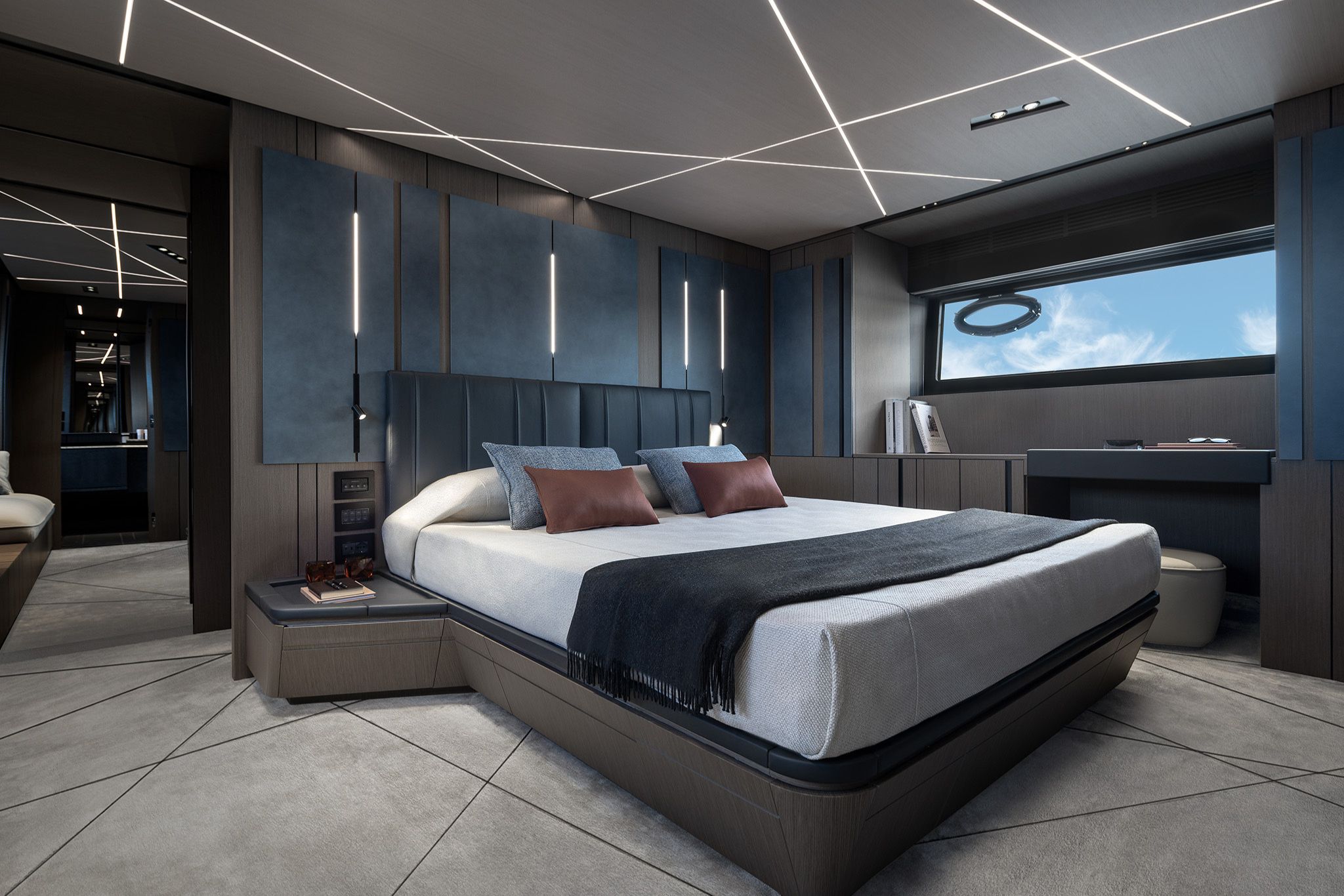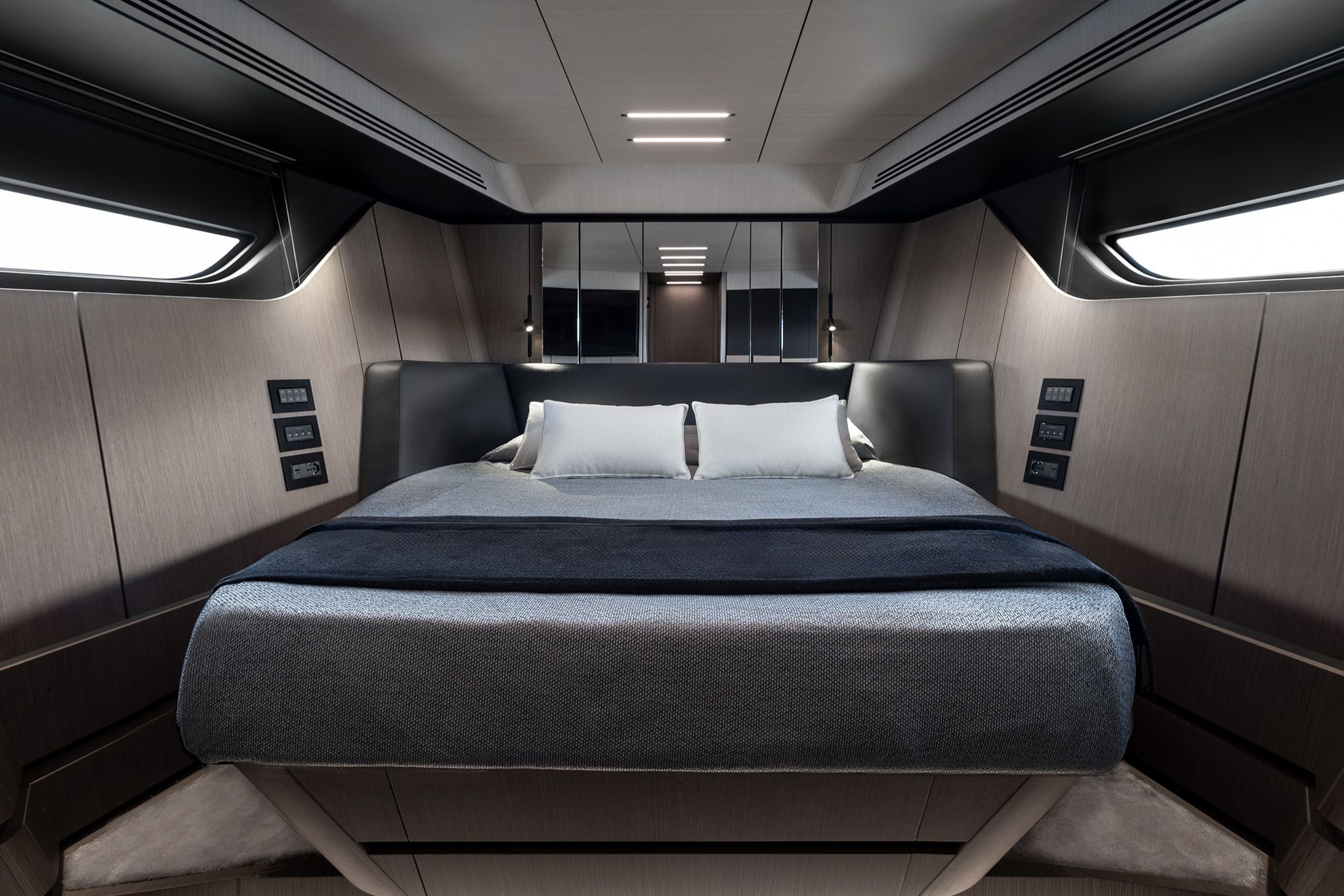 Pershing GTX80 er indrettet med fokus på ren nydelse, stil og personlighed. De store glasfacader bader interiøret i masser af naturligt lys. Den eksklusive italienske indretning gør opholdet til en sand æstetisk fornøjelse.