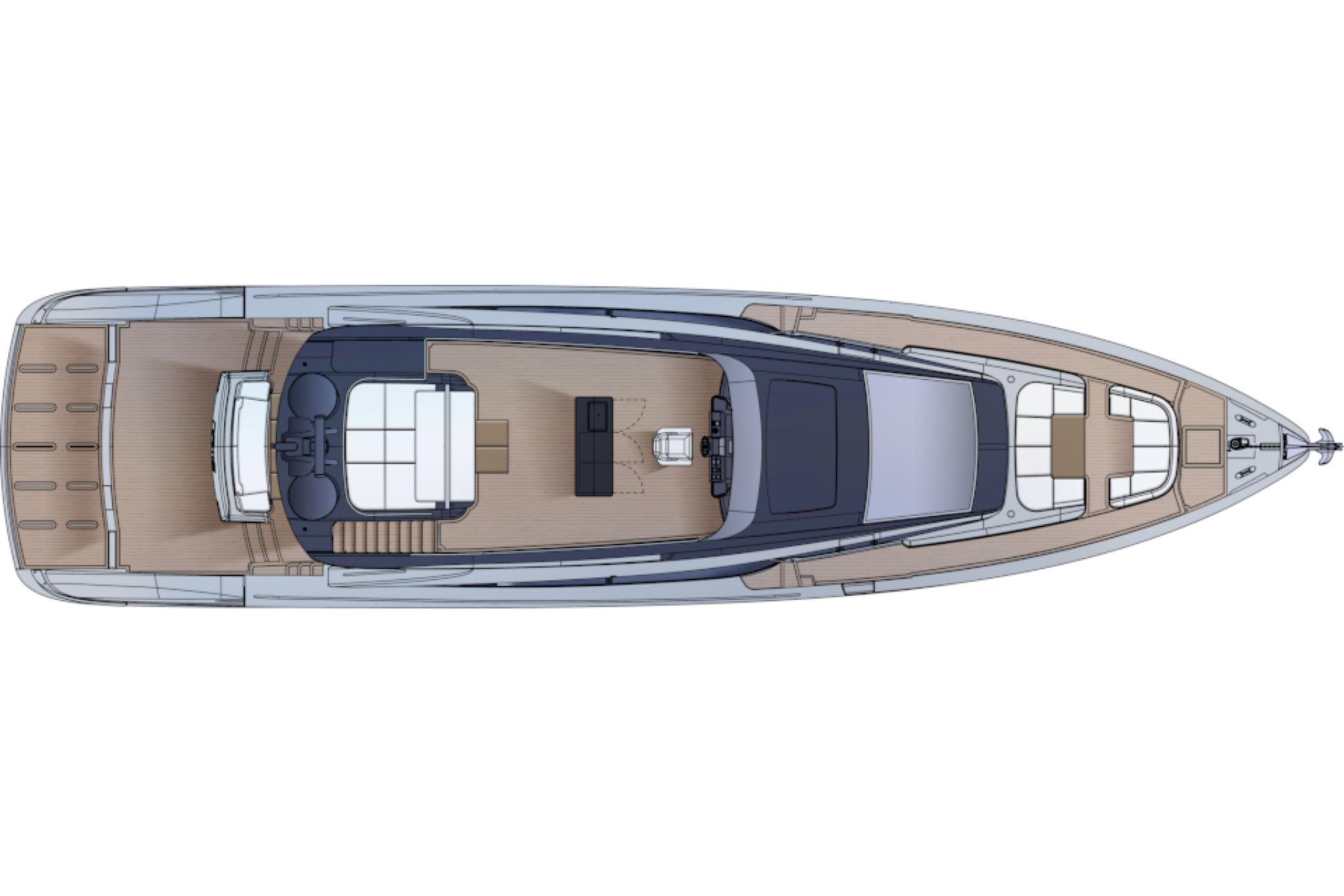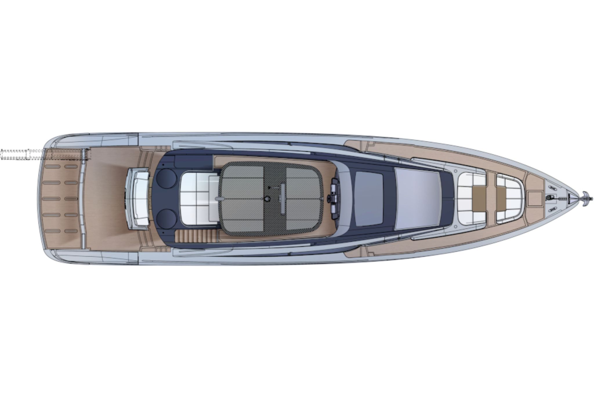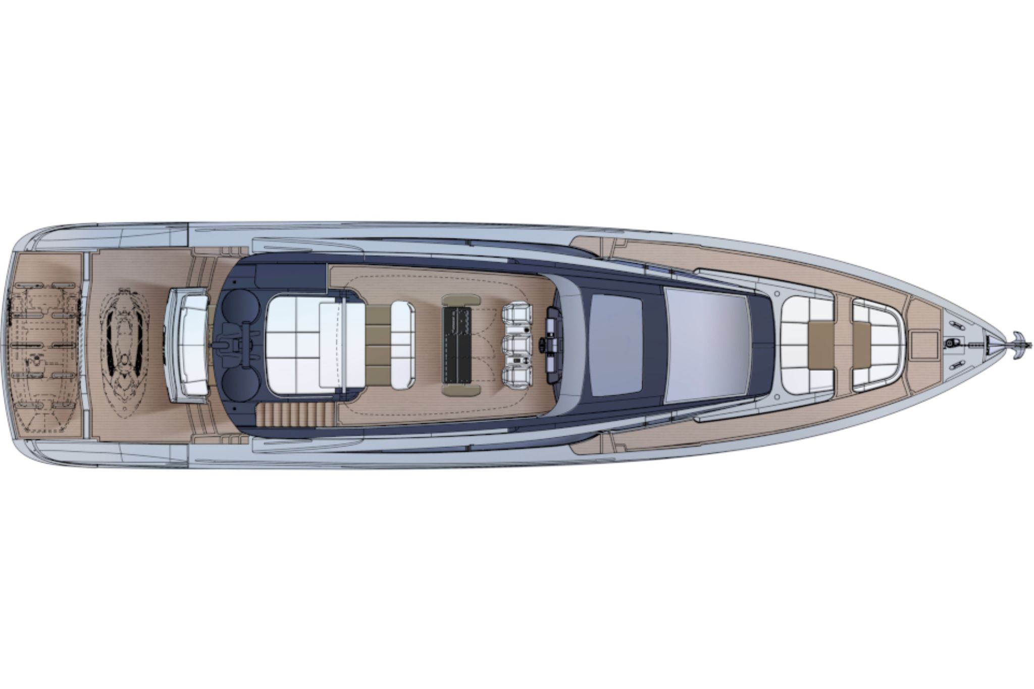 Yachten har flere innovative udearealer bl.a. en stor solterrasse, hvor du kan slappe af og nyde den fantastiske udsigt ud over vandet. Vha. hydraulik kan yachtens sider åbnes, hvor du kan nyde en flot udsigt, imens du flyver hen over vandet. GTX80 rummer desuden en indbygget hangar med plads til en tenderbåd og jetski.